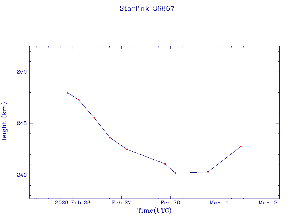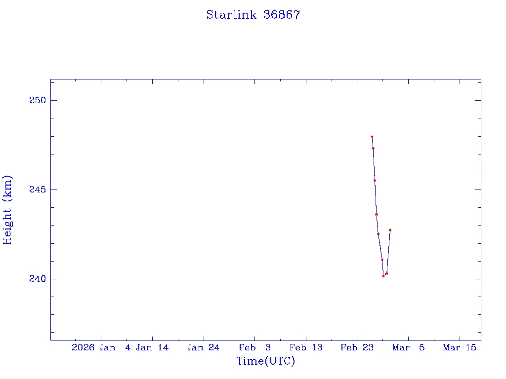 | Starlink 36867 | S67983 | D | 2026 Feb 25 | * | - |  |  |  |