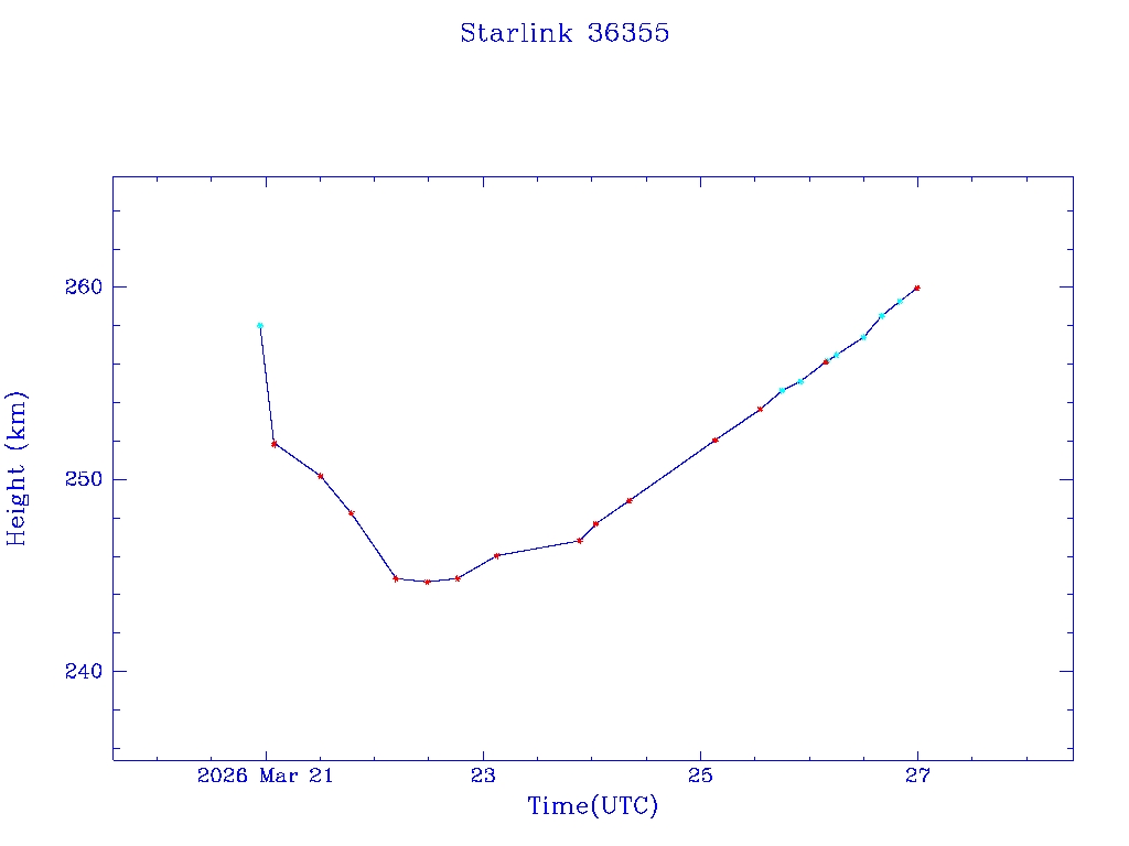 | Starlink 36355 | S68298 | A | 2026 Mar 20 | * | - |  |  |  |