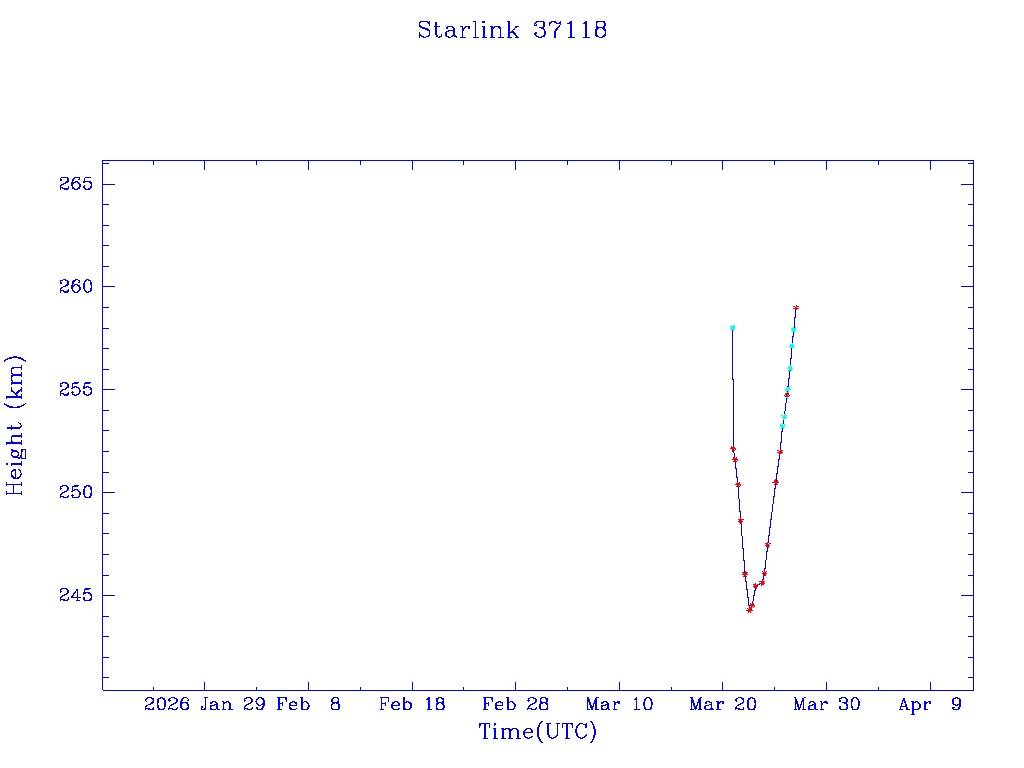 | Starlink 37118 | S68299 | A | 2026 Mar 20 | * | - |  |  |  |