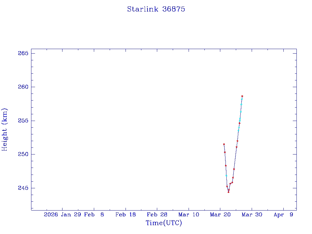 | Starlink 36875 | S68300 | A | 2026 Mar 20 | * | - |  |  |  |