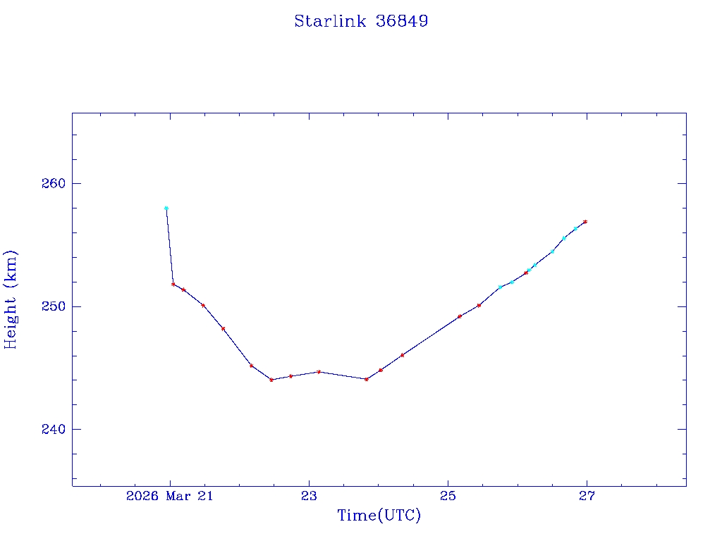 | Starlink 36849 | S68304 | A | 2026 Mar 20 | * | - |  |  |  |