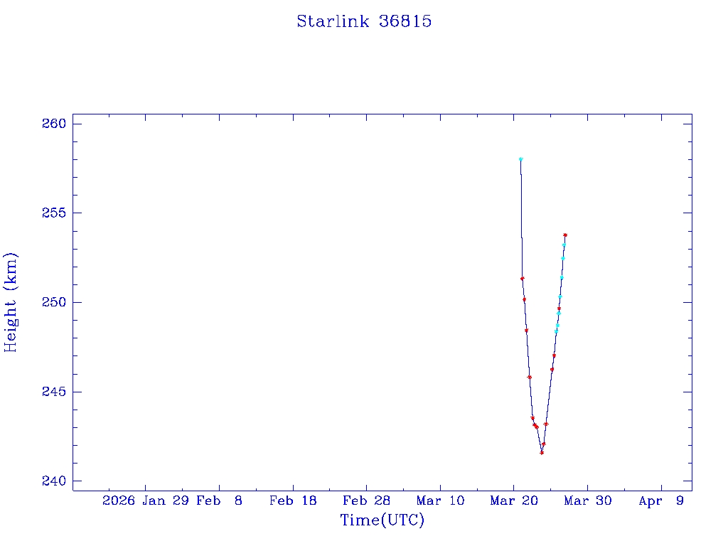 | Starlink 36815 | S68313 | D | 2026 Mar 20 | * | - |  |  |  |