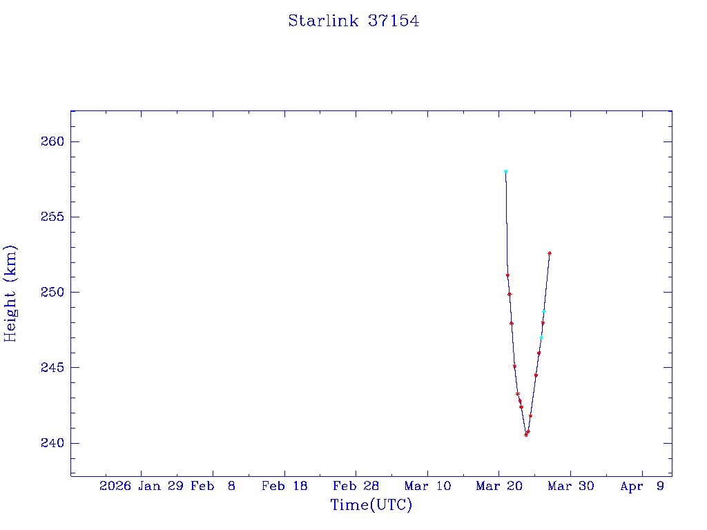 | Starlink 37154 | S68316 | D | 2026 Mar 20 | * | - |  |  |  |