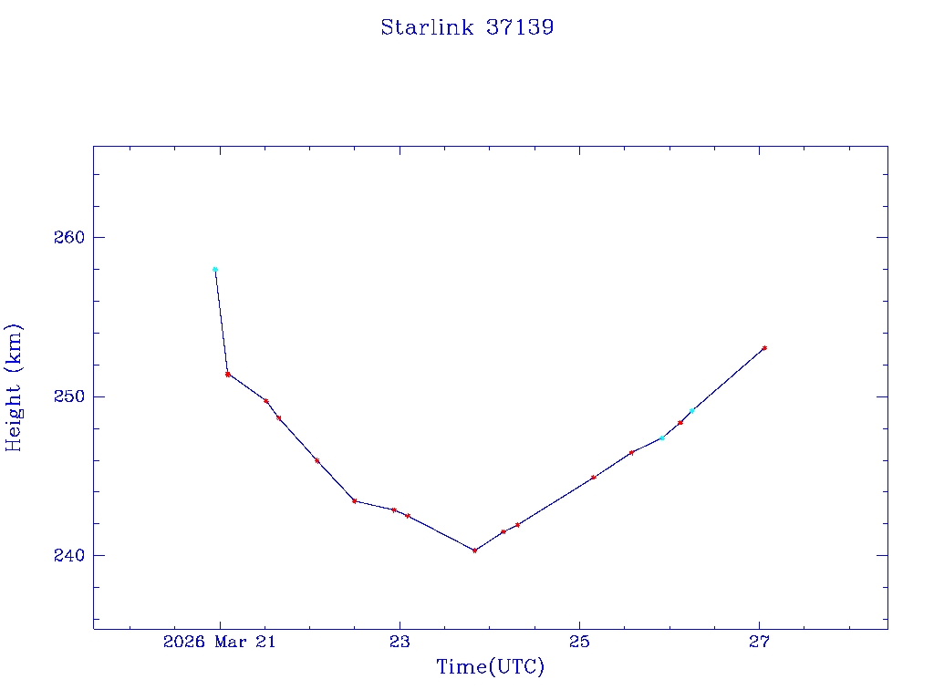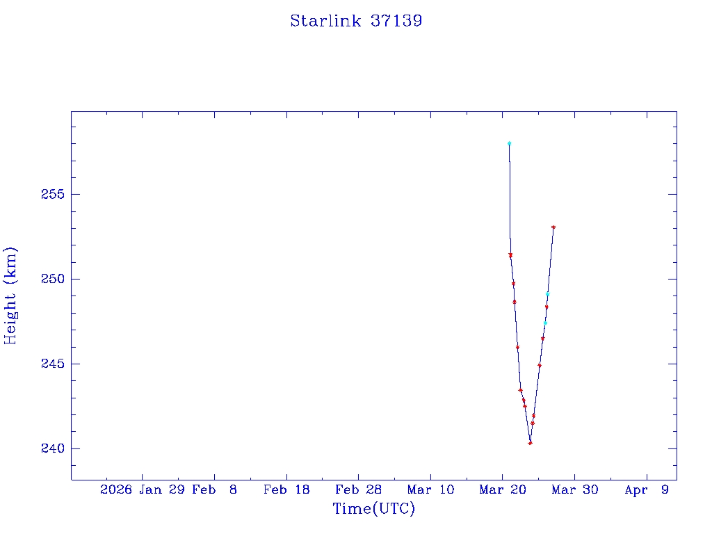| Starlink 37139 | S68317 | D | 2026 Mar 20 | * | - |  |  |  |
