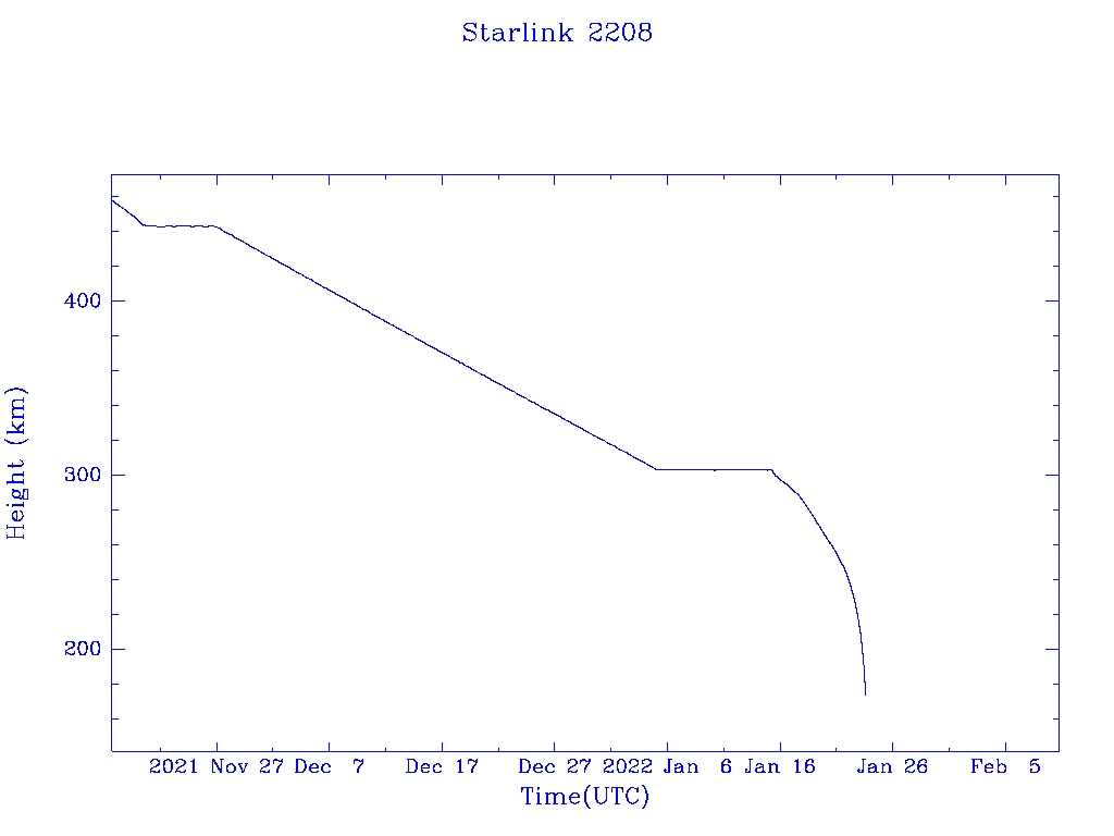 | Starlink 2208 | S47422 | R | 2021 Jan 24 | 2022 Jan 15 | 2022 Jan 23 |  |  |  |