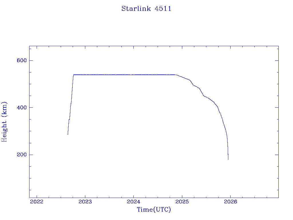 | Starlink 4511 | S53527 | R | 2022 Aug 19 | 2025 Nov 6? | 2025 Dec 12? |  |  |  |