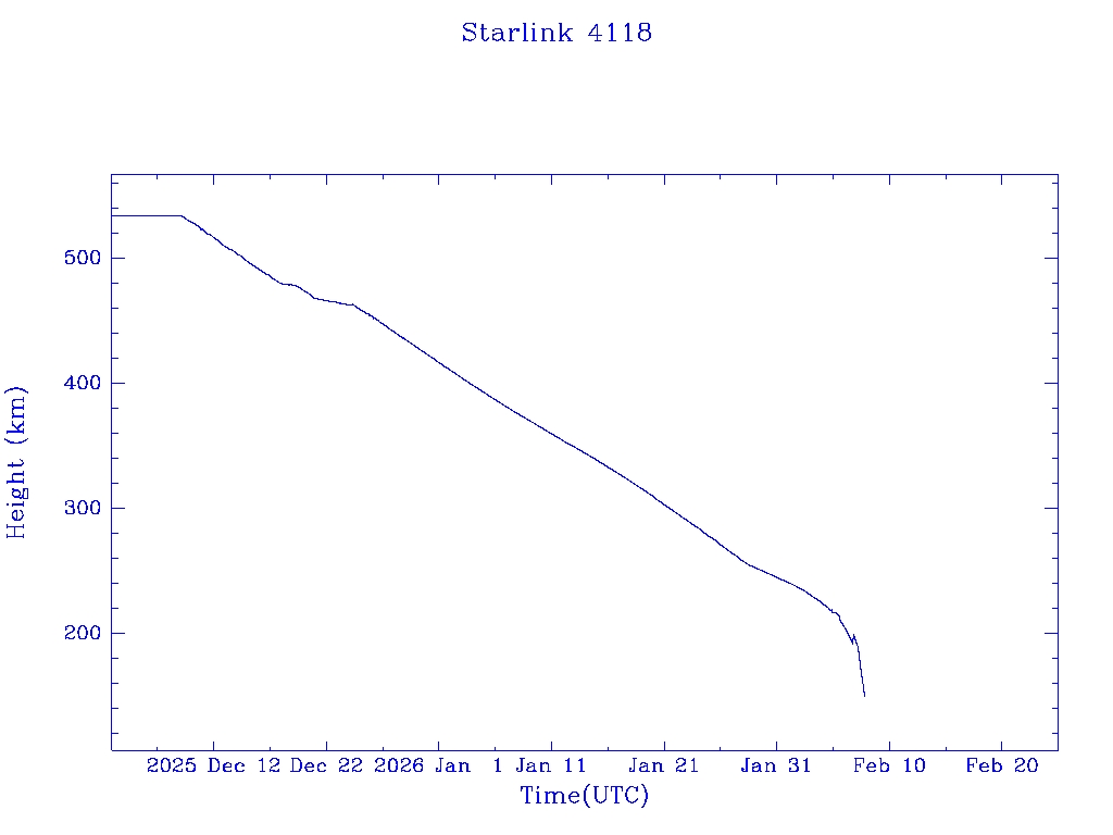 | Starlink 4118 | S53538 | R | 2022 Aug 19 | 2026 Jan 27? | 2026 Feb 7 |  |  |  |