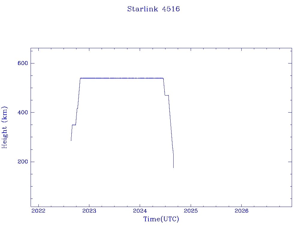 | Starlink 4516 | S53549 | R | 2022 Aug 19 | 2024 Aug 26? | 2024 Aug 27 |  |  |  |
