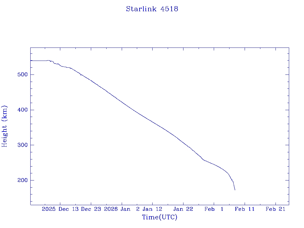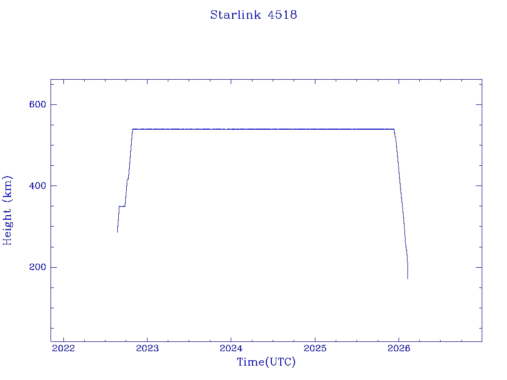 | Starlink 4518 | S53550 | R | 2022 Aug 19 | 2026 Jan 28? | 2026 Feb 8 |  |  |  |