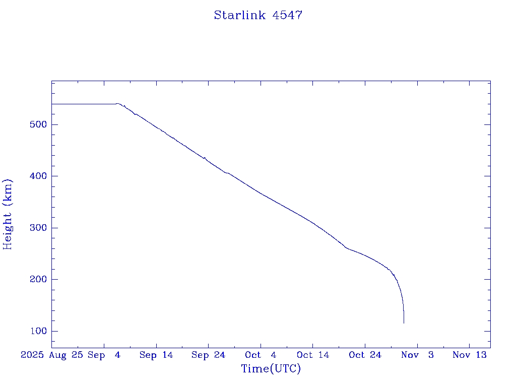 | Starlink 4547 | S53573 | R | 2022 Aug 19 | 2025 Oct 19 | 2025 Oct 31 |  |  |  |