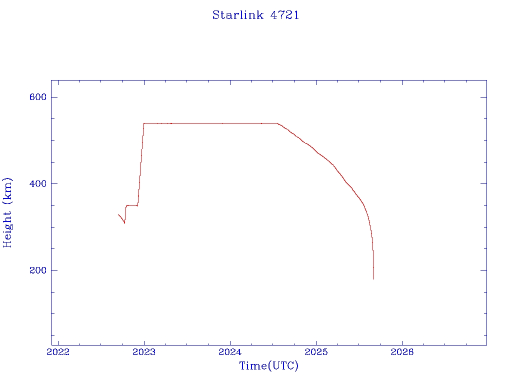 | Starlink 4708 | S53776 | R | 2022 Sep 11 | 2025 Jul 23? | 2025 Jul 24 |  |  |  |