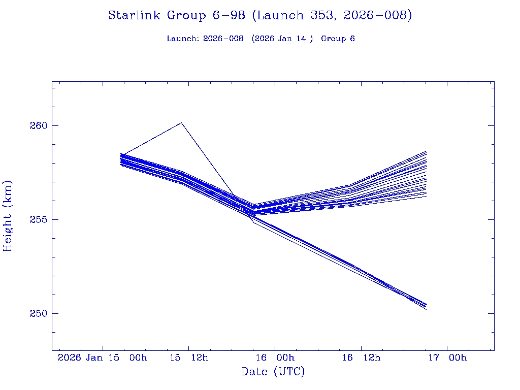 | Starlink Group 6-97 (Launch 352, 2026-005) | 29 | 0 | 0 | 0 | 0 | 0 | 29 | 0 | 0 | 0 | 29 | 0 | 0 | 0 | 0 | 0 | 29 | 0 | 0 |  |  |  |