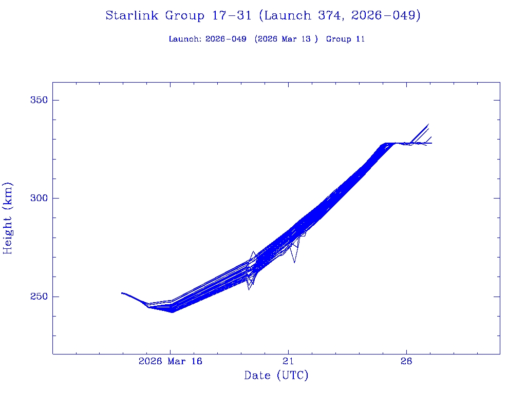 | Starlink Group 17-31 (Launch 374, 2026-049) | 25 | 0 | 0 | 0 | 0 | 0 | 25 | 0 | 0 | 0 | 25 | 0 | 0 | 0 | 0 | 0 | 0 | 25 | 0 |  |  |  |