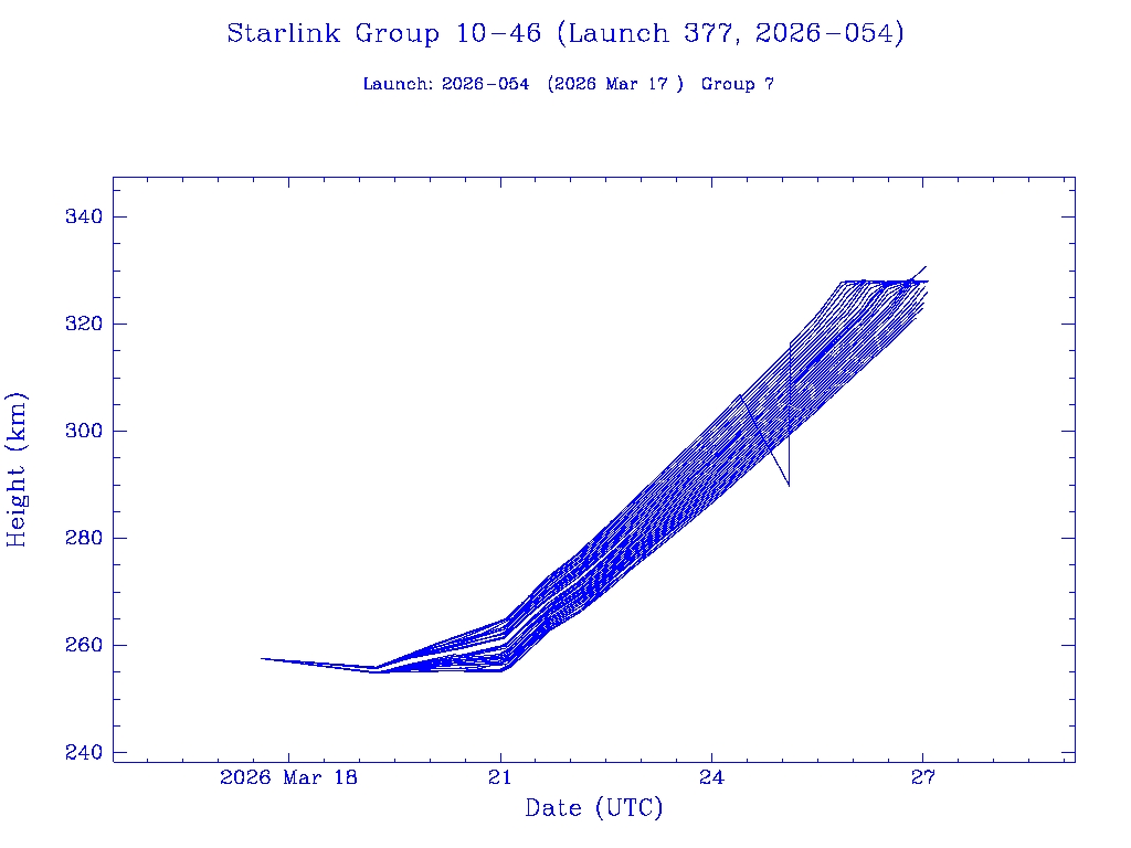 | Starlink Group 10-46 (Launch 377, 2026-054) | 29 | 0 | 0 | 0 | 0 | 0 | 29 | 0 | 0 | 0 | 29 | 0 | 0 | 0 | 0 | 0 | 0 | 29 | 0 |  |  |  |