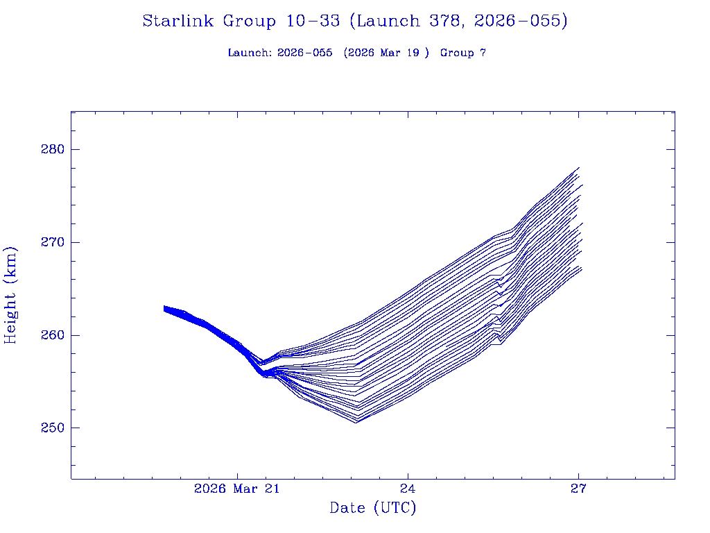 | Starlink Group 10-33 (Launch 378, 2026-055) | 29 | 0 | 0 | 0 | 0 | 0 | 29 | 0 | 0 | 0 | 29 | 0 | 0 | 0 | 0 | 0 | 0 | 29 | 0 |  |  |  |